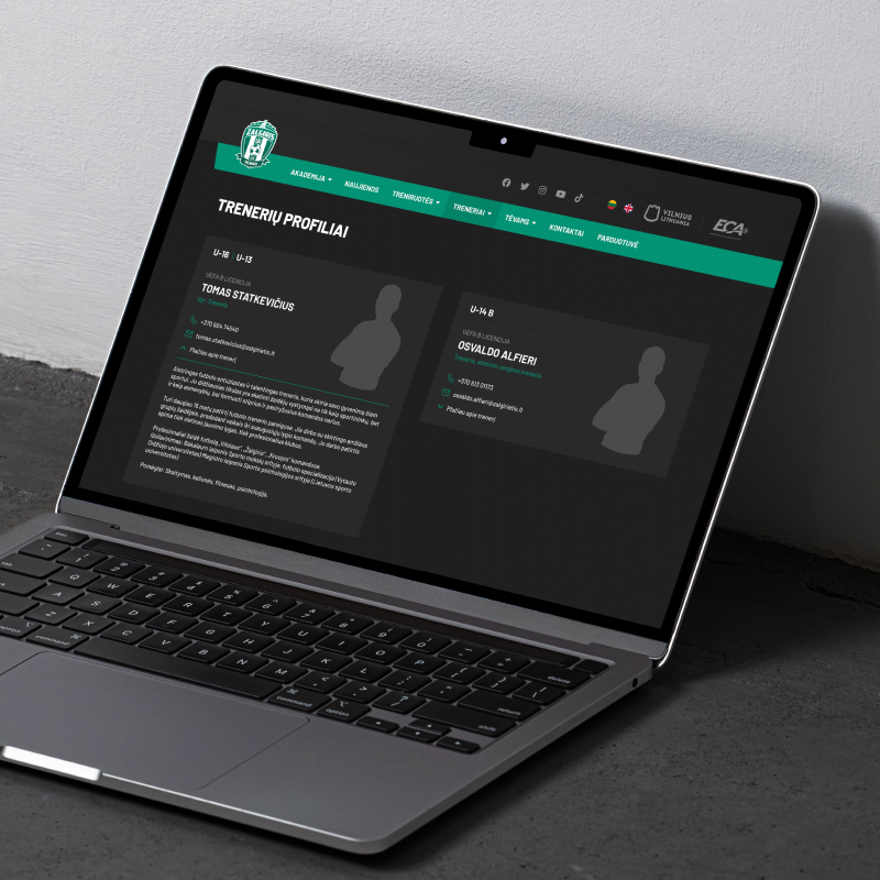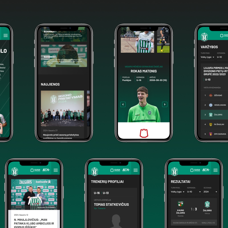 The design was adapted to FK Žalgiris’ visual identity, maintaining the academy’s professionalism and strong connection with the club. We implemented the development, API integration, and interactive elements so users could easily access news, registration forms, and training schedules.
